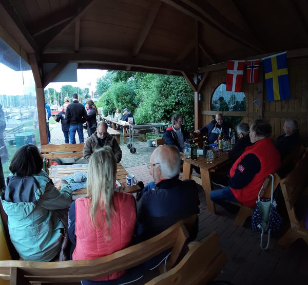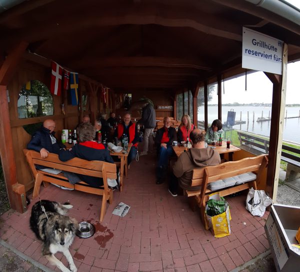 Trotz des etwas durchwachsenen Wetters - mit bis zu 30kn Grundwind - konnten wir uns ja immerhin mit 6 Booten in Arnis einfinden. Die Grillmöglichkeiten sind nochmal deutlich aufgepeppt worden. Hütte renoviert und mit Zeltwand aufgewertet, 8 Tische mit Bänken, gute Grills und eine nette Besatzung - auch mit der WSG Arnis. Lauter freundliche Menschen :-)